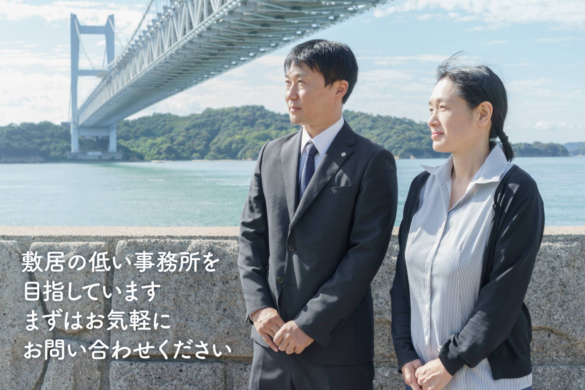 当事務所では敷居の低い事務所を心がけており、倉敷市児島地区や水島、玉島など市内に限らず、岡山市、玉野市、総社市や近県も対応しています。
