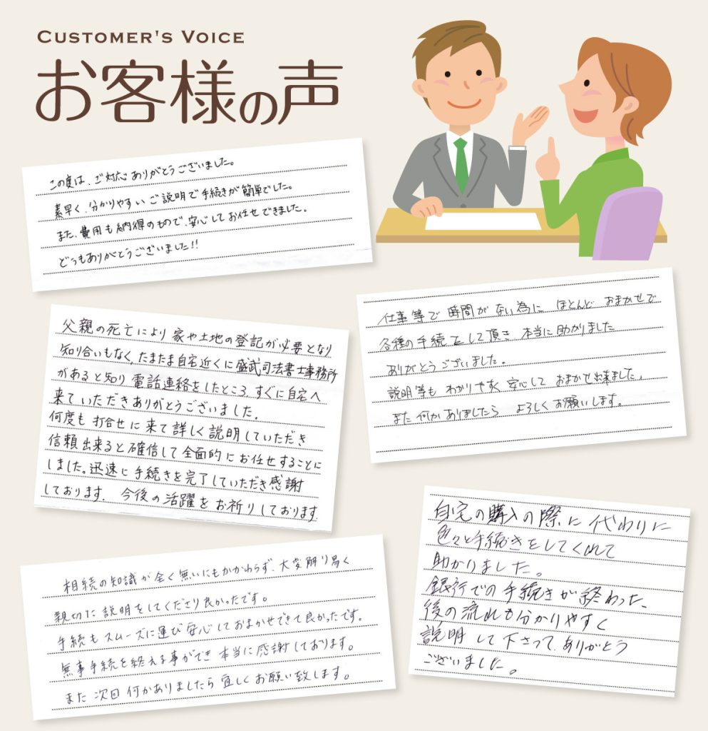 お手続きの際には,一定期間かかるものは途中経過を報告し,ご依頼者様と相談をしながら進めてまいります。